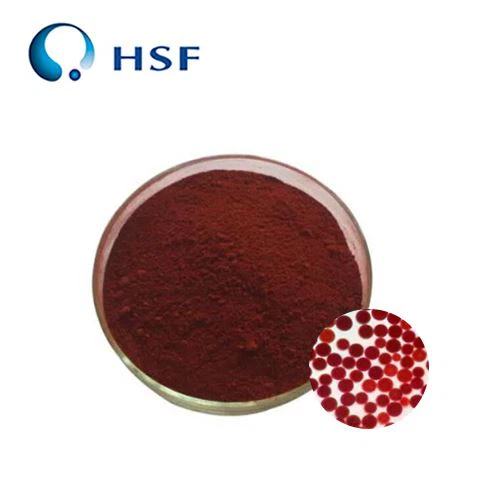 Astaxanthin কার্যকরভাবে সক্রিয় অক্সিজেন মুক্ত র্যাডিকেল নিভিয়ে দিতে পারে এবং শক্তিশালী অ্যান্টিঅক্সিডেন্ট কার্যকলাপ রয়েছে। Astaxanthin শুধুমাত্র ফসফোলিপিড ঝিল্লির পৃষ্ঠে মুক্ত র্যাডিকেল ক্যাপচার করতে পারে না, বরং ঝিল্লিতে প্রতিক্রিয়াশীল অক্সিজেন প্রজাতিকে আরও স্ক্যাভেঞ্জ করতে পারে, মুক্ত র্যাডিকেলগুলিকে স্ক্যাভেঞ্জিং করার ক্ষেত্রে অ্যাস্ট্যাক্সানথিনকে অন্যান্য ক্যারোটিনয়েডের চেয়ে শক্তিশালী করে তোলে। উপরন্তু, astaxanthin একটি উজ্জ্বল লাল রঙ এবং শক্তিশালী পিগমেন্টেশন ক্ষমতা আছে।